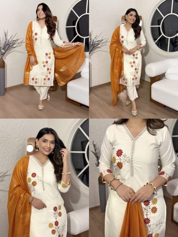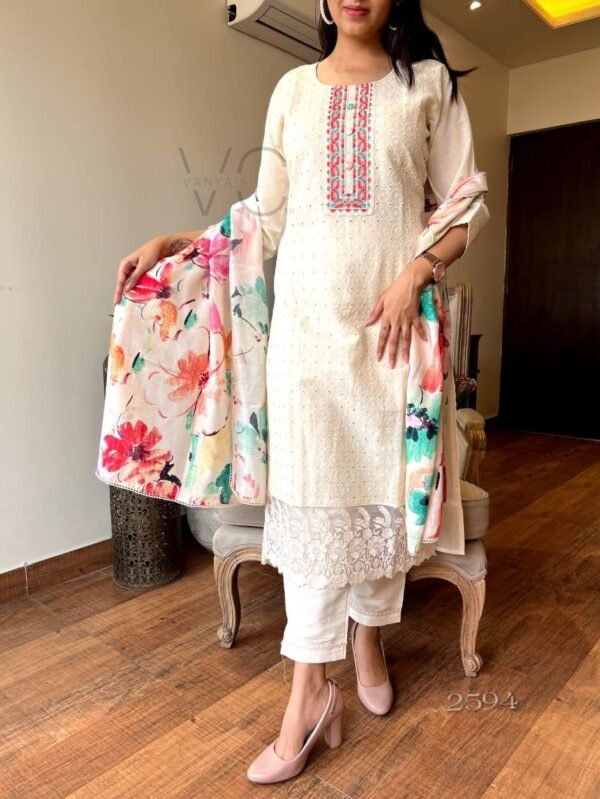 🌺🌺🌺🌺🌺🌺🌺🌺 Give a jaw-dropping look with this our cream shade cotton schiffle chikankari suit by Vc Fashion. Create a incomparable visual impact with unique style .