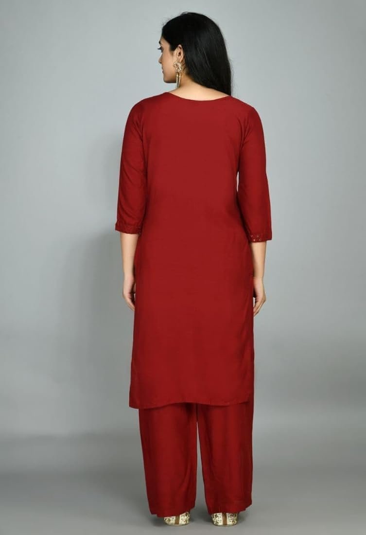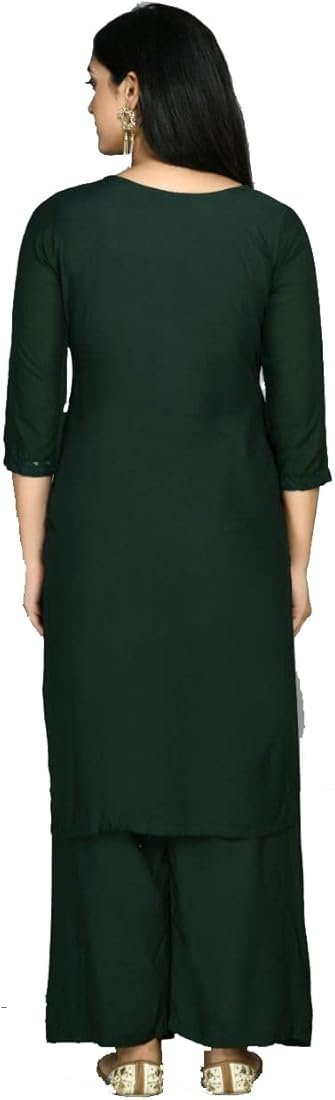 โจ Women’s Rayon Embroidery Work Kurti Plazo Set with Dupatta โจ