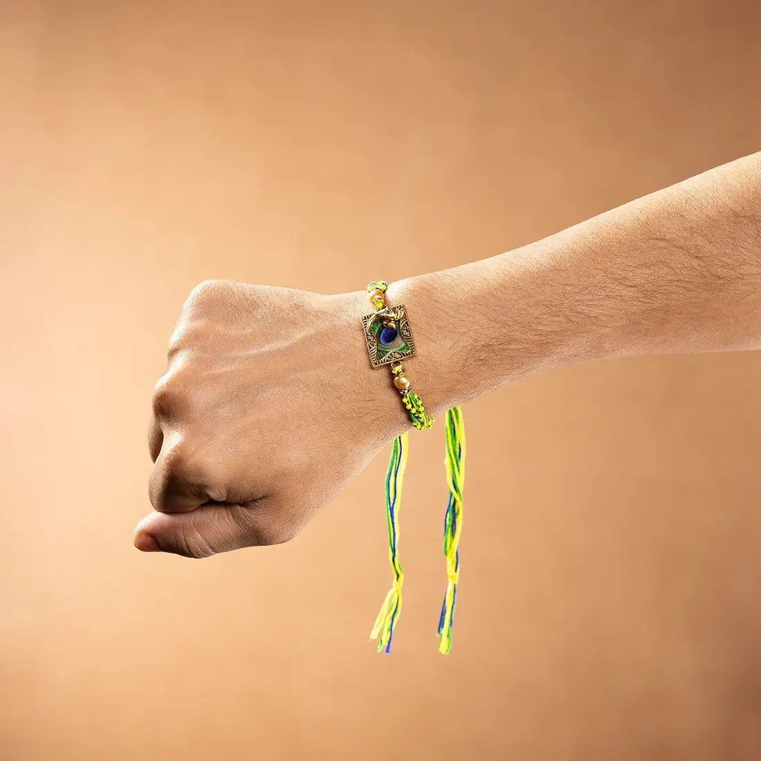 - Elegant Designer Rakhis – Includes one intricately crafted Moti Mayur Rakhi and a stunning Morpankh Pendant Rakhi