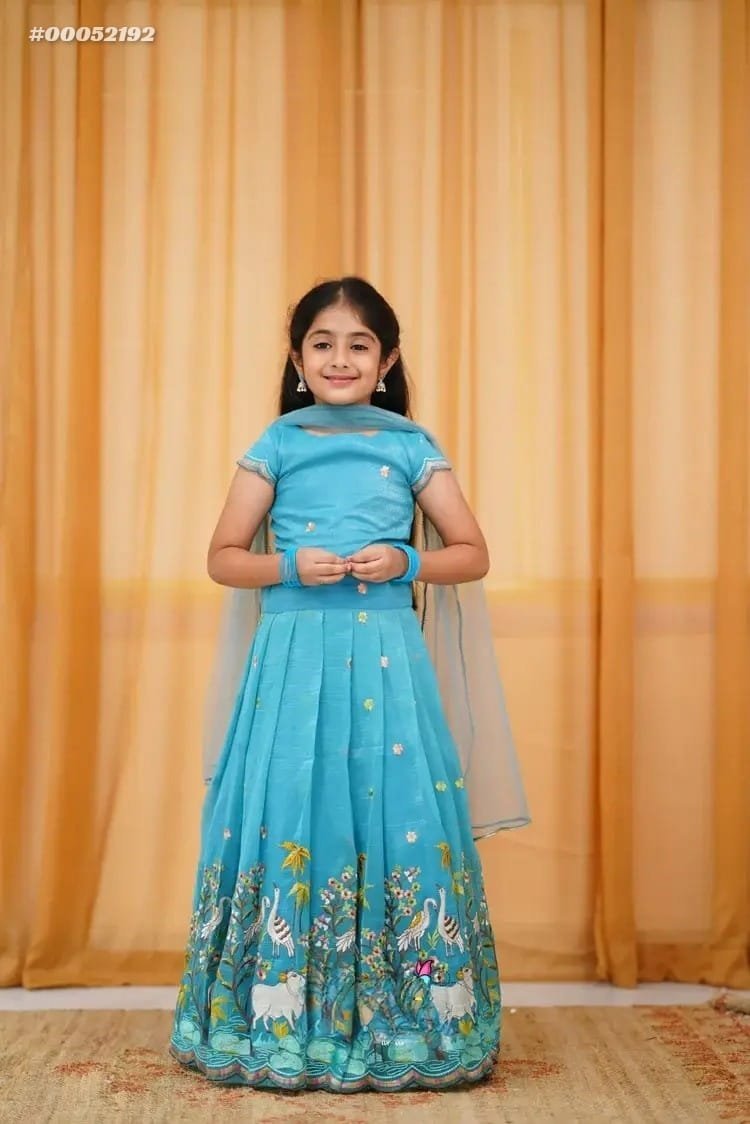 *Experience the richness of Indian heritage with our Kalamkari embroidery daaman set, featuring intricate designs and patterns.*