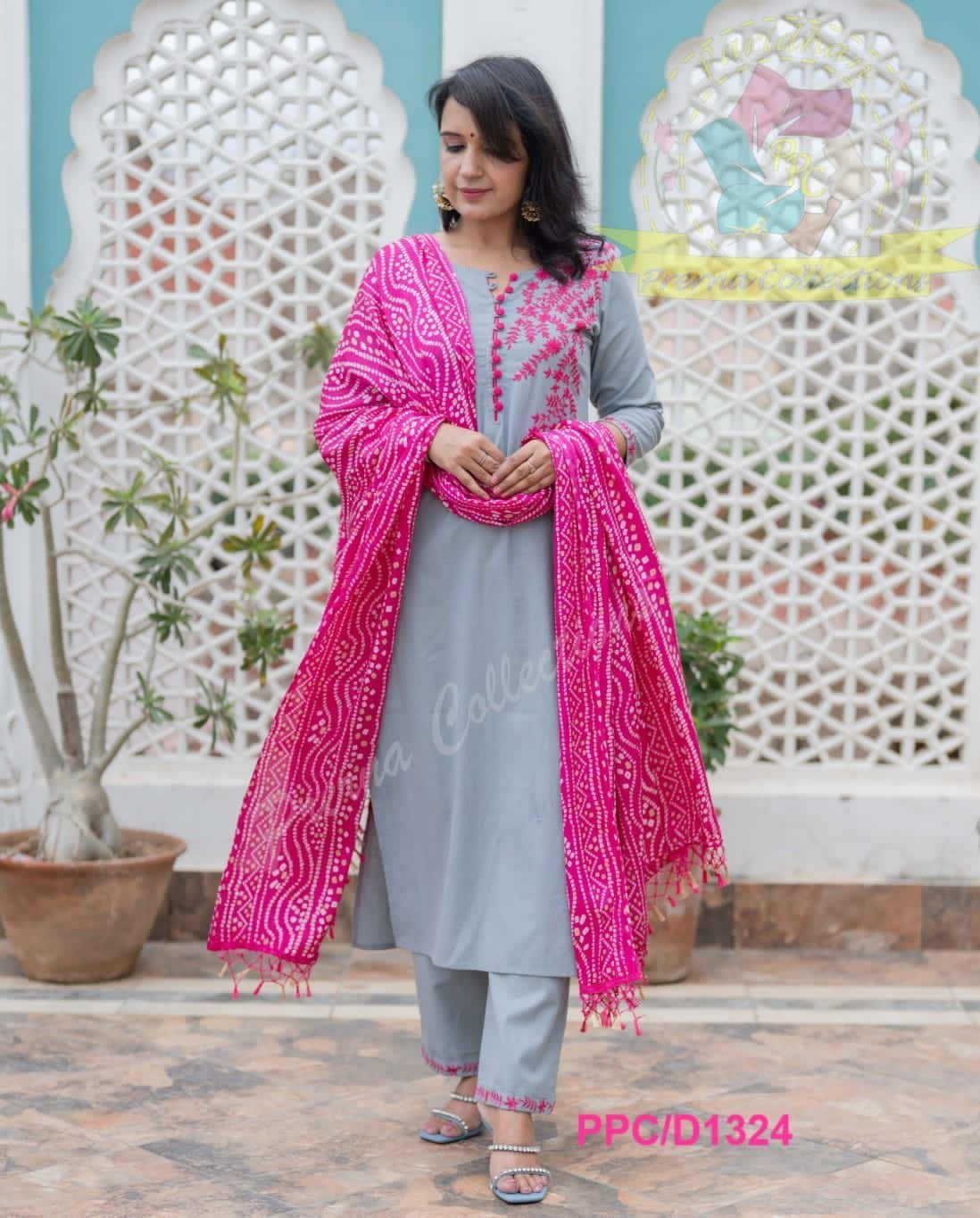 *UPGRADE YOUR WARDROBE IN OUR CLASSY cotton EMBROIDERY SET WITH BANDHANI SILK DUPATTA PERFECT FOR ALL OCCASIONS*