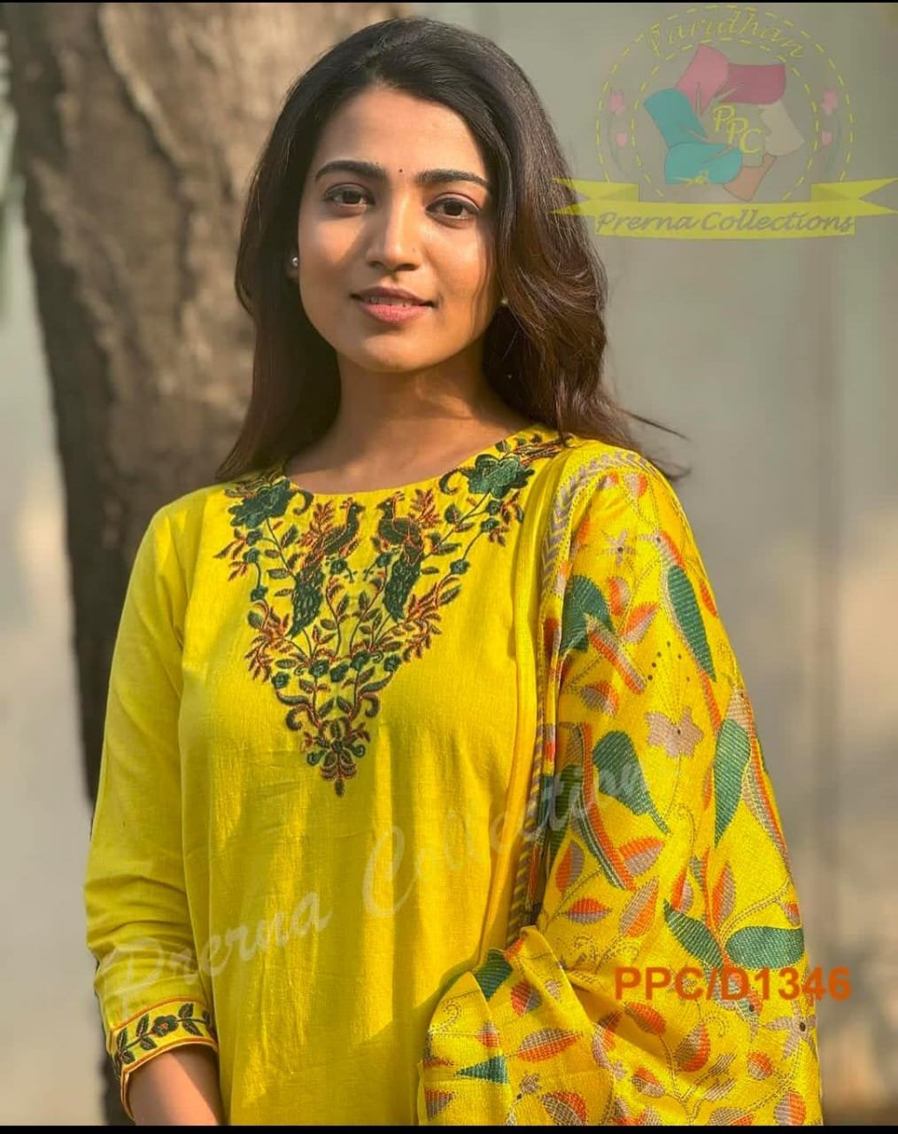 👉KURTA- PURE COTTON SLUB KURTI WITH INTRICATE EMBROIDERY WORK ON YOKE AND SLEEVES AND HEM