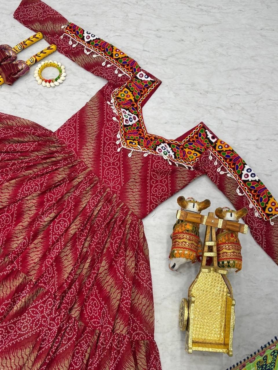 This Navratri Special Gamathi Work Gown seems like a stunning and intricately designed outfit. Here are some key features:
