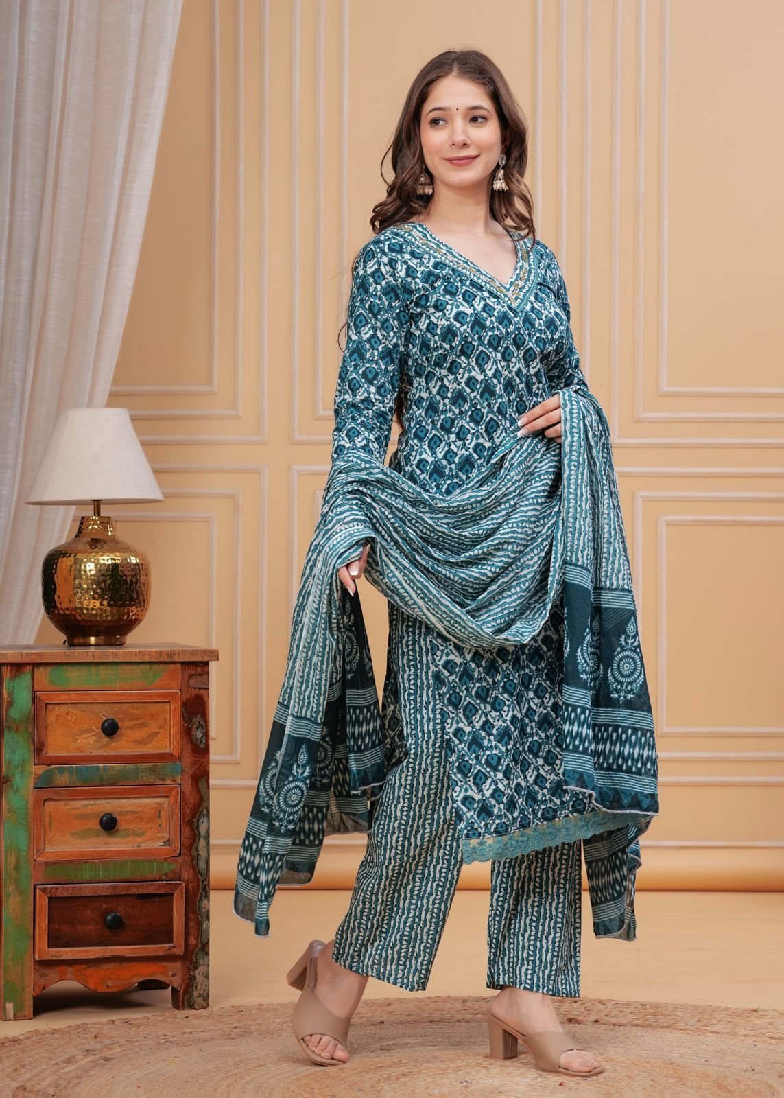 *🌸🌸Subtle sophistication in Printed Cotton suit set setenhanced with intricate Pure hand Making/work which gives u office wear effortlessly elegant 🌸🌸*