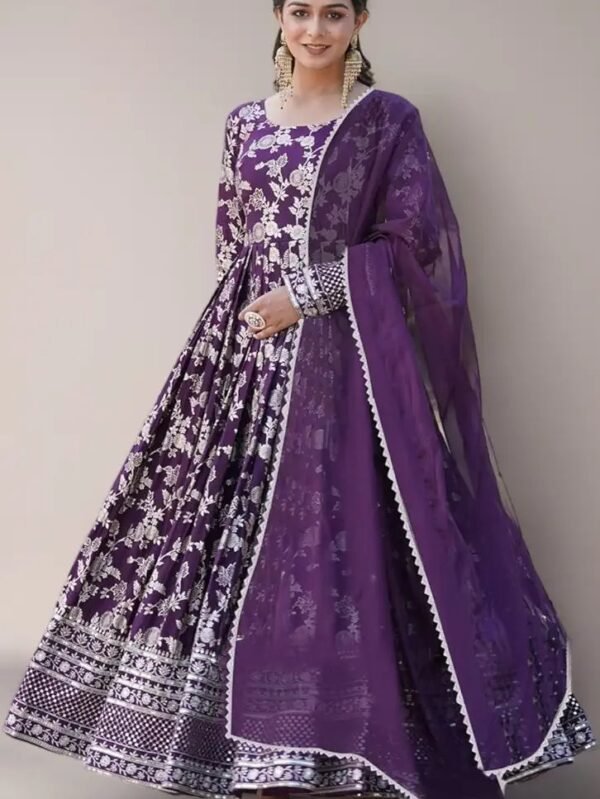 MODERNFASHIONS.IN WOMEN'S ART SILK EMBROIDERED ANARKALI KURTA SET