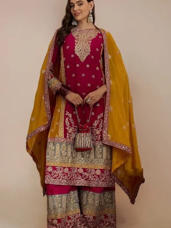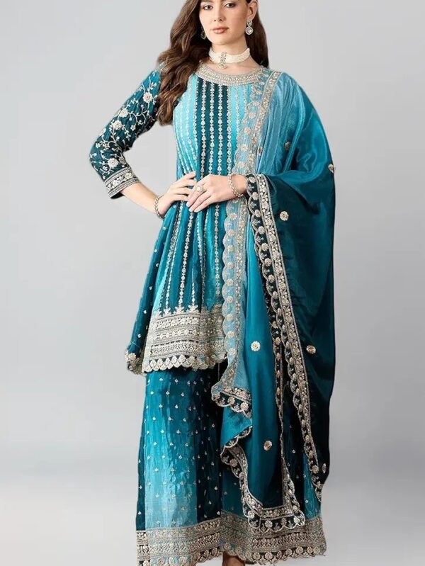 NEW colour 3-pair Suit Set you've described seems to be a party wear outfit made from have pure chinon fabric with sequence embroidery work .(3-Pair) Code : GCC0010