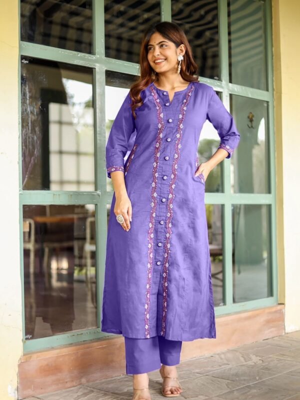 *💃 Beautiful Cotton Fabric Embroidered Border Worked On Kurti Deatiling with Both Side Pocket + Sleeves + Buttons Paired With Pant ☺️ 🫶🏻💃*