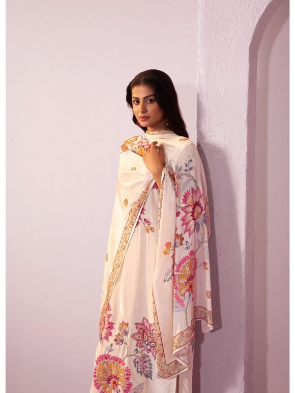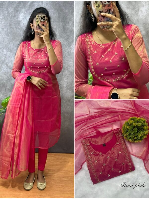 Trending sparkle twill tissue net fabric kurti with dupatta.The handwork on yoke parts is completely stunning look for festival wear