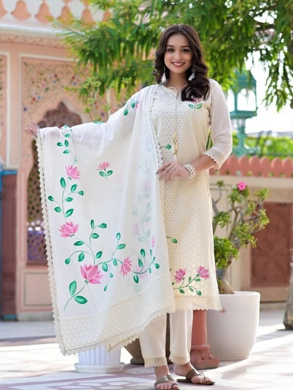 *The uber classy south khadi cotton embroidery suit and khadi silk dupata set which give a classy look...❤️💜*