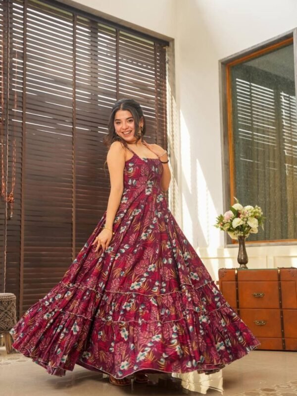 Be the radiant guest everyone remembers Attend weddings and festivals with an air of grace in our Muslin maxi ensemble. Printed full flare in sleeveless. adorned with details fit for any upcoming celebrations πͺ·πͺπ Make memories in style ππ