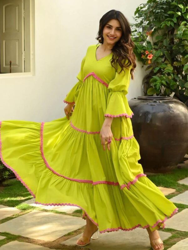 On 14kg reyon cotton beautiful full flair dress with length of 52”