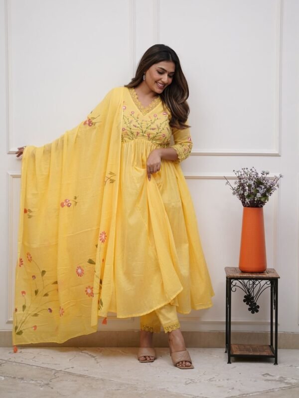 **Pistaa's Women’s Pure Cotton Anarkali Kurta Set with Pant & Dupatta**