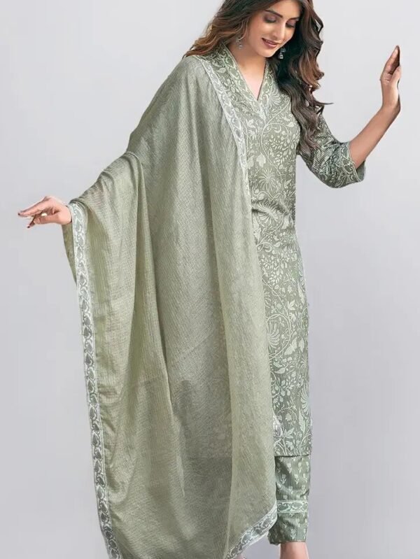 Elevate your ethnic style with this stunning Women's Cotton Blend Straight Printed Kurta with Pant & Dupatta.