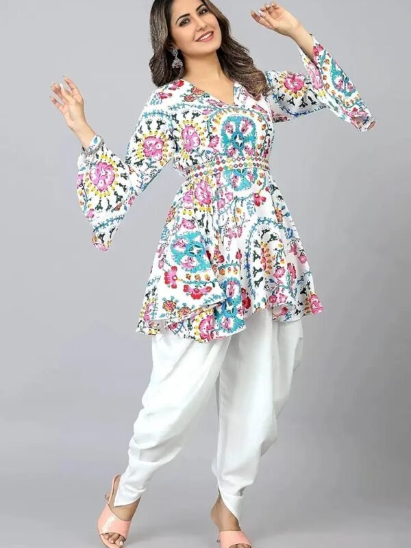 Elevate your ethnic style with this stunning Floral Print Cotton Kurta and Dhoti Set for Women.