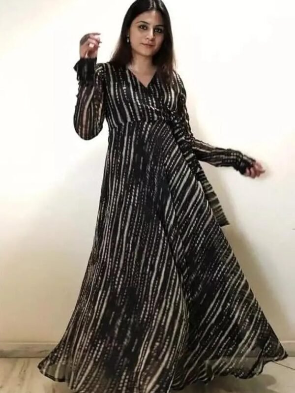 ELEGANT GEORGETTE ANARKALI GOWN Shop now at Modernfashions.in and get a stunning Women's Georgette Long Sleeve Round Neck All Over Print Maxi Length Anarkali Stitched Gown!