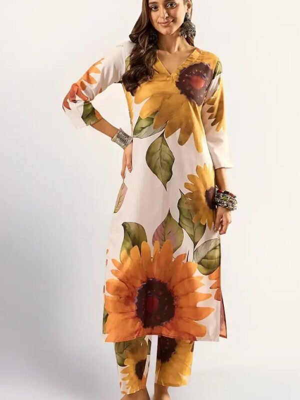 ELEGANT OFF WHITE COTTON BLEND KURTA SET Elevate your ethnic wear collection with this stunning Women's Off White Cotton Blend Printed Straight Kurta & Pant Set, available now for ₹1600!